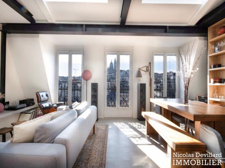 Dans le vivant quartier de la mairie du 18ème, à deux pas du métro Jules Joffrin, cet appartement rénové au dernier étage bénéficie d’une vue spectaculaire, d’un ensoleillement important et de prestations de qualité…