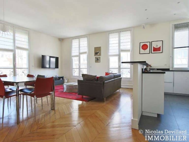 Dans une jolie rue piétonne du quartier Montorgueil, véritable village hyper central, vivant et très bien desservi, ce duplex sous les toits offre une abondance de lumière et le calme du dernier étage…