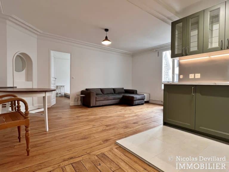 A deux pas de la très vivante rue des Abbesses, au pied de la butte et devant le cimetière de Montmartre, cet appartement au dernier étage bénéficie d’une exposition plein soleil et d’une vue panoramique sans aucun vis-à-vis…