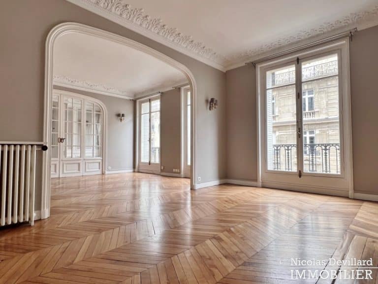 Au milieu de la rue de Passy, son marché et ses innombrables commerces, entre le Trocadéro et la Muette, non loin du jardin du Ranelagh, cet appartement bénéficie d’un de beaux volumes et du caractère typiquement parisien…