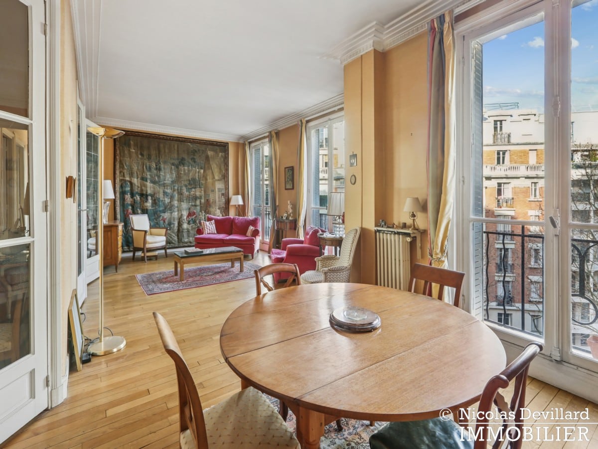 A deux pas de l’église d’Auteuil, tout près des commerces de la rue d’Auteuil, de Jean-Baptiste Say et non loin du parc Sainte-Périne, cet appartement familial et bien distribué dispose de vastes pièces et du charme d’un appartement d’angle très lumineux. Situé au 5ème étage avec ascenseur d’un immeuble 1930 de très bon standing, il se compose d’une belle entrée, un salon-salle à manger de 35 m² et doté de 3 portes-fenêtres, une cuisine avec un espace repas située juste en face de la salle à manger, 4 chambres (16, 15, 13 et 11 m²) dotées de placard, dont la principale dotée de 2 portes-fenêtres ouvrant sur un balcon, une grande salle de bains avec baignoire et wc, 2 cabinets de toilette permettant de créer 2 salles d’eau dans ces chambres, un 2nd wc séparé, et une cave. Cet appartement est à rénover entièrement mais le plan est parfait en l’état.