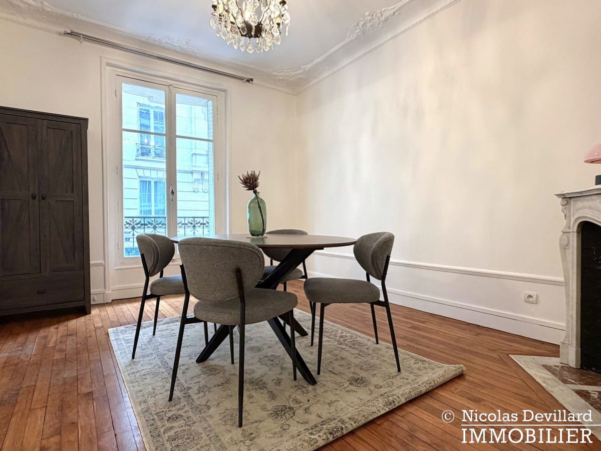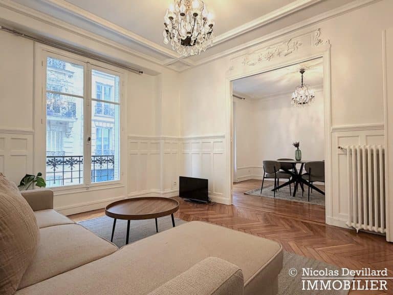 Dans une rue très calme du quartier Jasmin, à deux pas de l’avenue Mozart et de ses nombreux commerces, entre les villages d’Auteuil et de Passy, cet appartement conjugue le caractère de l’appartement haussmannien avec un grand calme. Situé au 1er étage avec ascenseur d’un immeuble pierre de taille, il se compose d’une entrée, une belle réception de 31 m² composée d’un salon avec canapé-lit et d’une salle à manger avec cheminée (les deux pièces reliées par des portes vitrées), 1 chambre avec cheminée, une cuisine équipée LV, une salle de bain, wc séparé, buanderie avec lave-linge et sèche-linge.