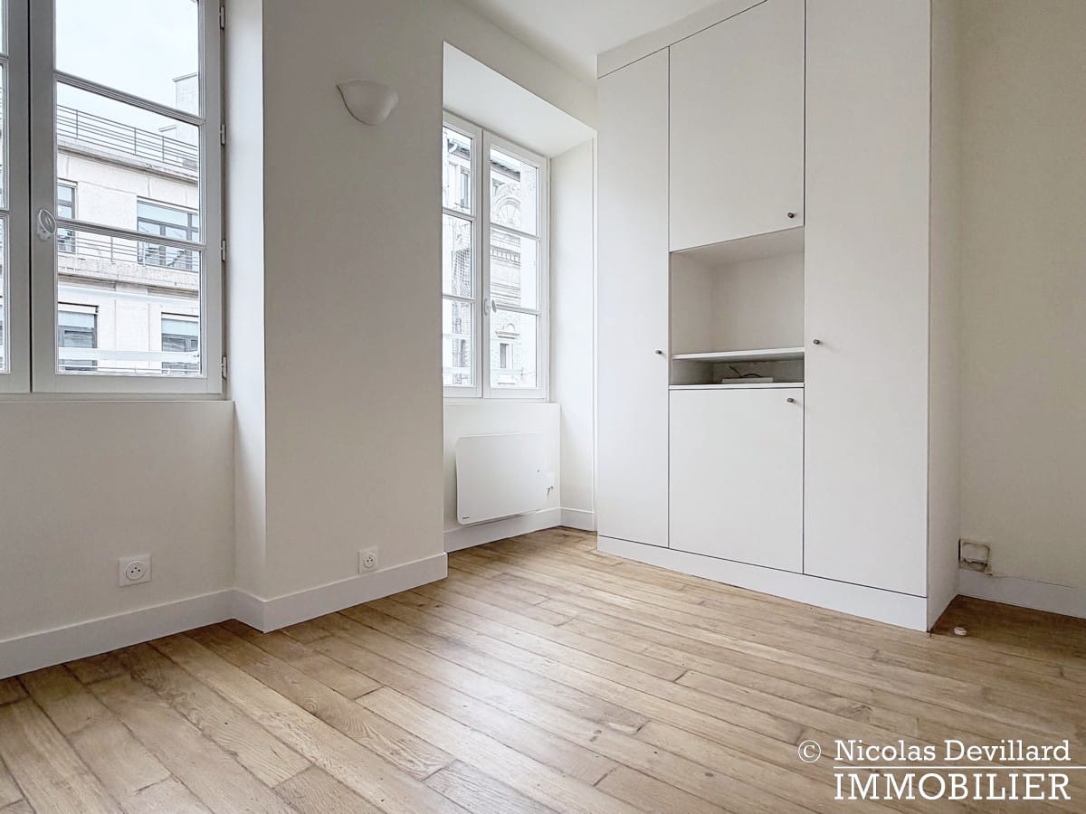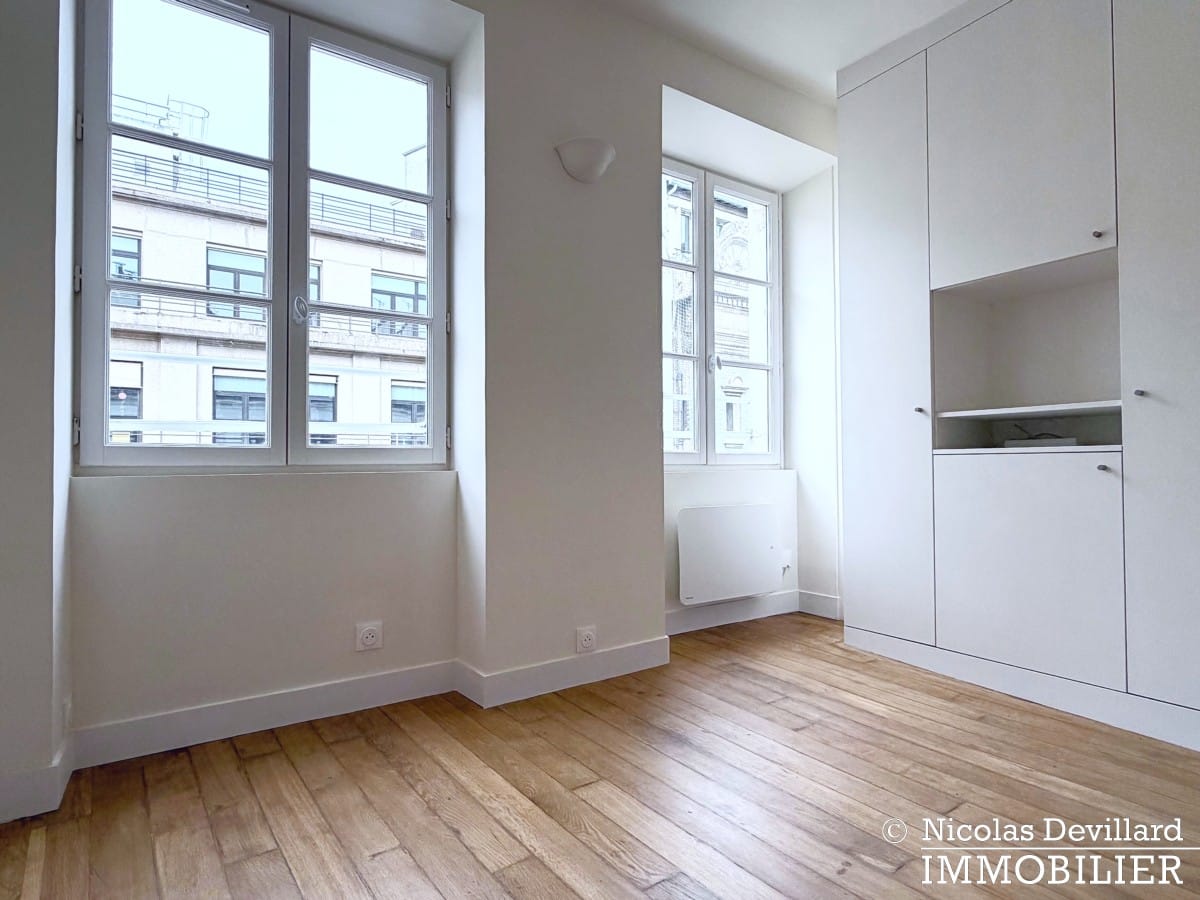 Au cœur de Paris, à deux pas du village Montorgueil, de la fondation Pinault, de la nouvelle Samaritaine et de la nouvelle poste du Louvre, tout près du hub de transports du Châtelet, et non loin du Palais-Royal, cet appartement perché au 5ème étage avec ascenseur offre calme, charme et lumière. Situé au 5ème étage avec ascenseur d’un immeuble ancien, il se compose d’une entrée, un salon doté de 2 fenêtres, une chambre dotée également de 2 fenêtres et de placards, une cuisine aménagée, une salle d’eau, un wc séparé. L’isolation renforcée a permis d’obtenir un bon DPE (D/B). Cet appartement est vendu avec une cave.