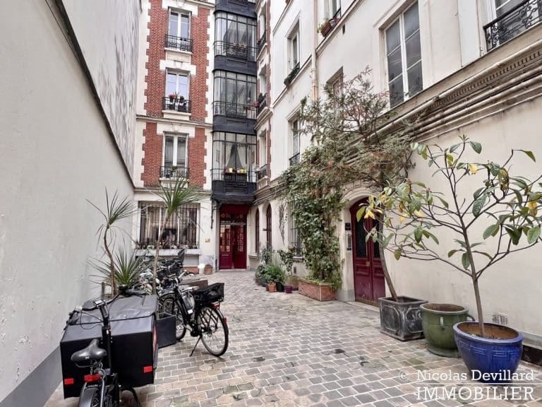 espace pour vélos dans la cour de l’immeuble.
