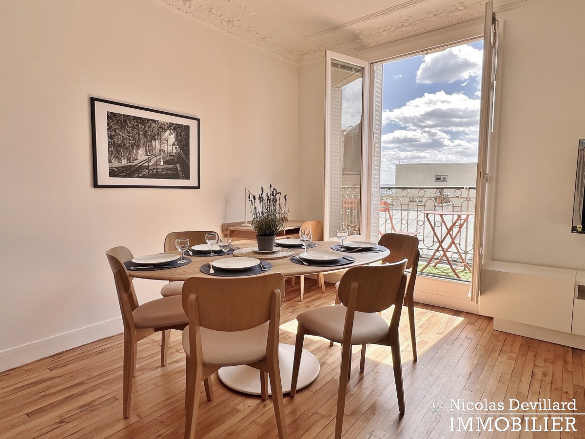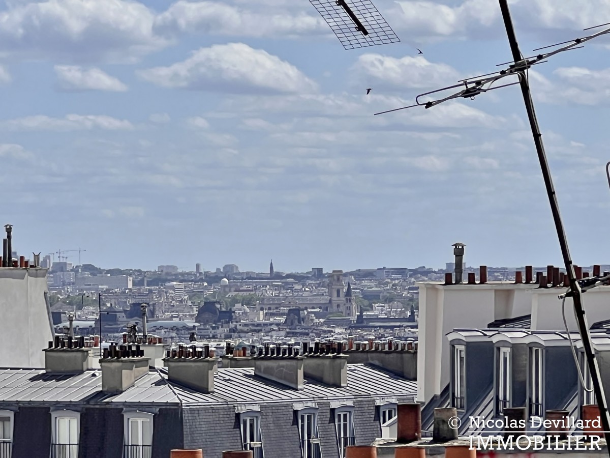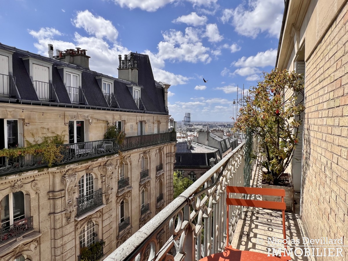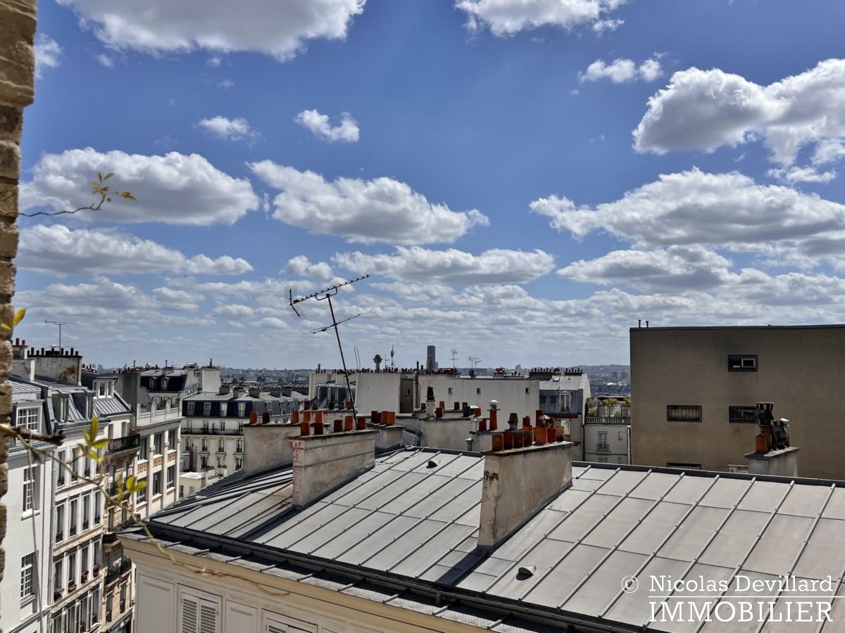 Au pied de la butte Montmartre, à deux pas des commerçants de la rue des Abbesses et du moulin de la Galette, dans ce vrai village qui a su rester parisien, cet appartement offre une vue et un balcon plein soleil qui ajoutent au charme de son caractère classique. Situé au 5ème étage avec ascenseur d’un bel immeuble pierre de taille avec gardienne, il se compose d’une entrée, un salon double doté de deux fenêtres sur le balcon filant et d’une cheminée (décorative), 2 chambres (dont une sur le balcon) avec placards, cuisine équipée LV LL SL, une salle de bains avec wc.
