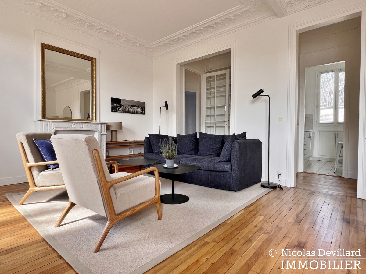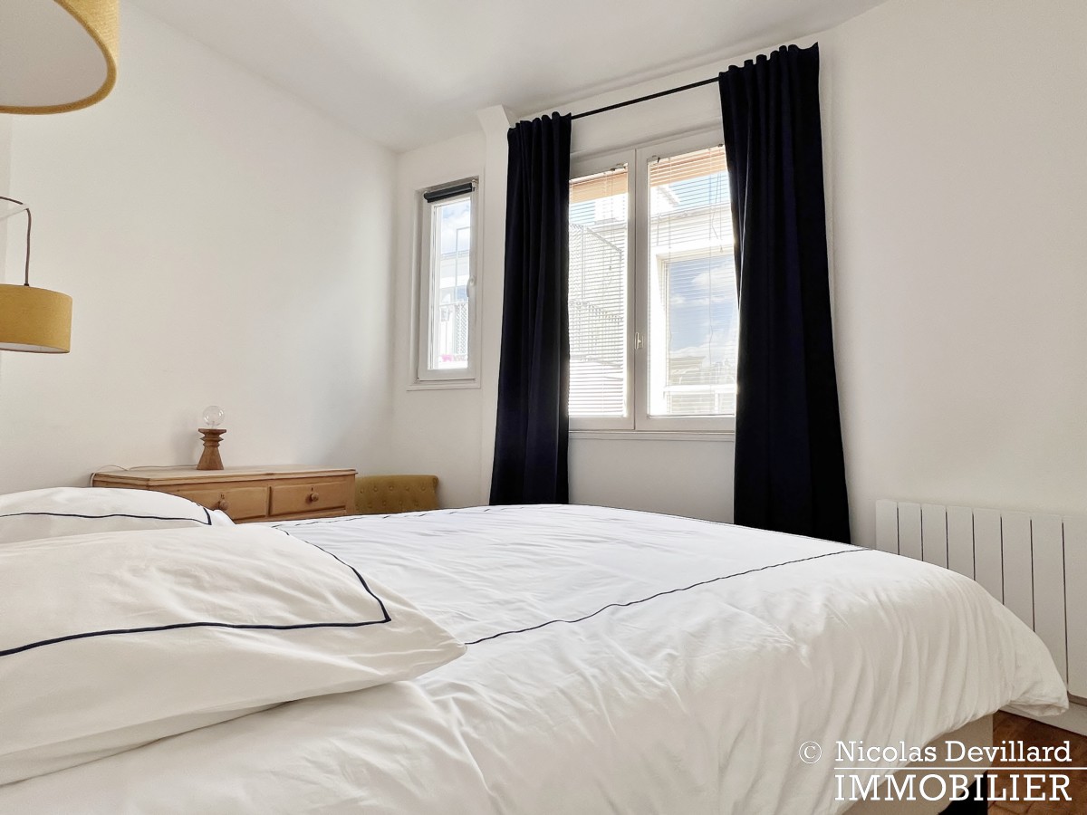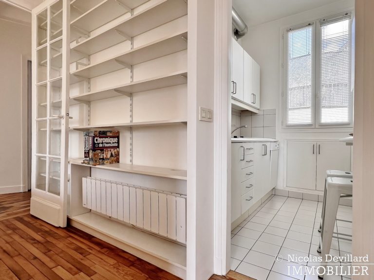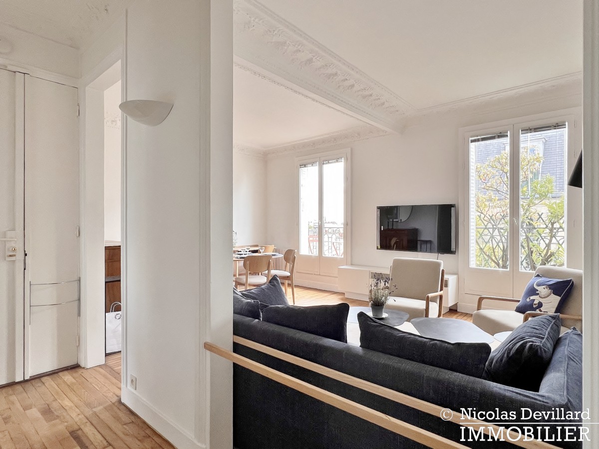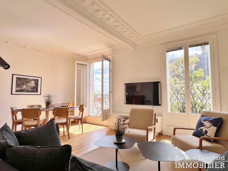 Au pied de la butte Montmartre, à deux pas des commerçants de la rue des Abbesses et du moulin de la Galette, dans ce vrai village qui a su rester parisien, cet appartement offre une vue et un balcon plein soleil qui ajoutent au charme de son caractère classique. Situé au 5ème étage avec ascenseur d’un bel immeuble pierre de taille avec gardienne, il se compose d’une entrée, un salon double doté de deux fenêtres sur le balcon filant et d’une cheminée (décorative), 2 chambres (dont une sur le balcon) avec placards, cuisine équipée LV LL SL, une salle de bains avec wc.