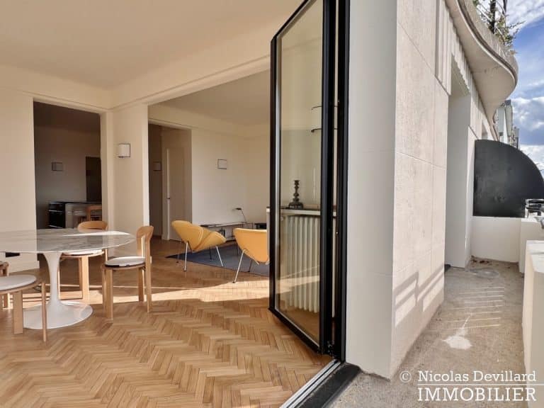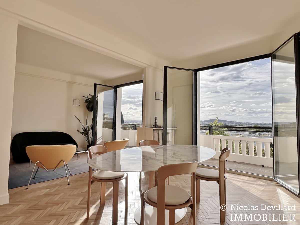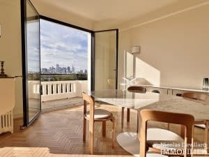 Face au bois de Boulogne, à proximité de la porte de la Muette, proche de nombreux commerces et non loin de l’avenue Victor Hugo, cet appartement traversant, bordé par un balcon et plein soleil offre une vue panoramique sur la skyline de la Défense, le mont Valérien, le Bois et aussi la Tour Eiffel. Situé au 6ème étage avec ascenseur d’un immeuble 1930, cet appartement rénové se compose d’un salon double exposé Ouest ouvrant sur le balcon et la vue spectaculaire, une cuisine ouverte entièrement équipée LV LL SL, 2 chambres (dont une chambre d’appoint) avec vue sur la Tour Eiffel, une salle de bains avec wc, 2nd wc séparé, dressing. Internet inclus. Ameublement et aménagements en cours.
