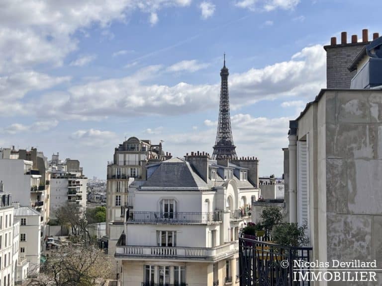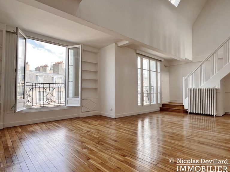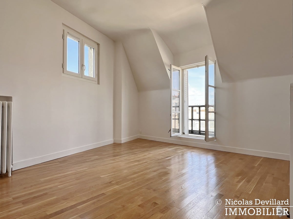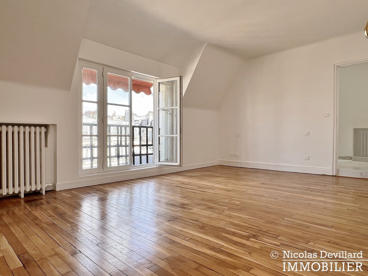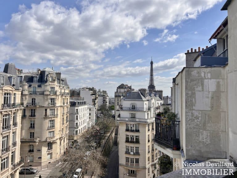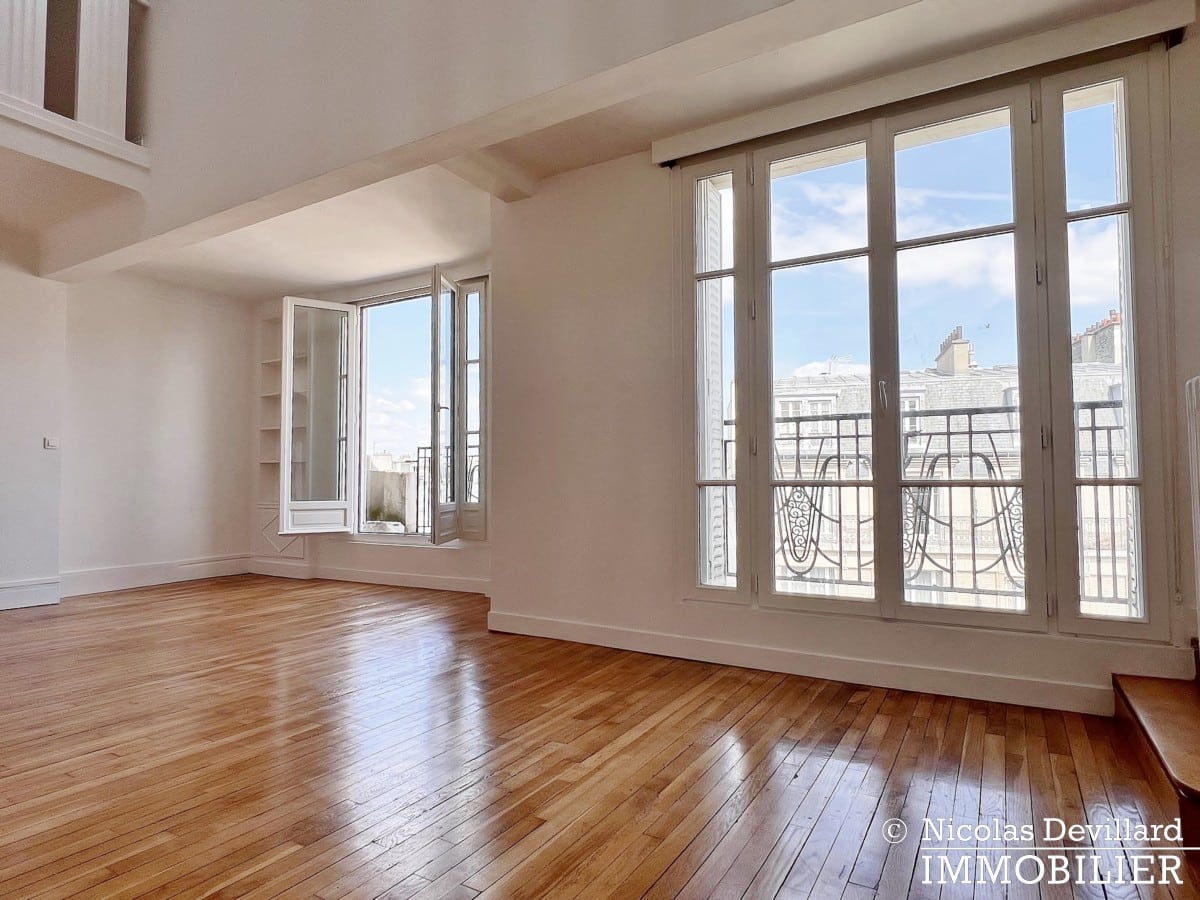 Dans le quartier de la Muette, à proximité de la rue de Passy et de ses marchés, et proche du parc de Passy, ce duplex rénové au dernier étage bénéficie d’une lumière abondante et de volumes hors du commun. Aux 7ème et 8ème étages avec ascenseur d’un immeuble pierre de taille 1930 de standing, il se compose d’une entrée, un salon double très haut de plafond et ouvrant sur un balcon, 3 chambres, une mezzanine-bureau, une cuisine aménagée, 3 salles de bains (1 avec baignoire, 2 avec douche), 2 wc, une cave. 1 parking dans l’immeuble.