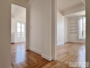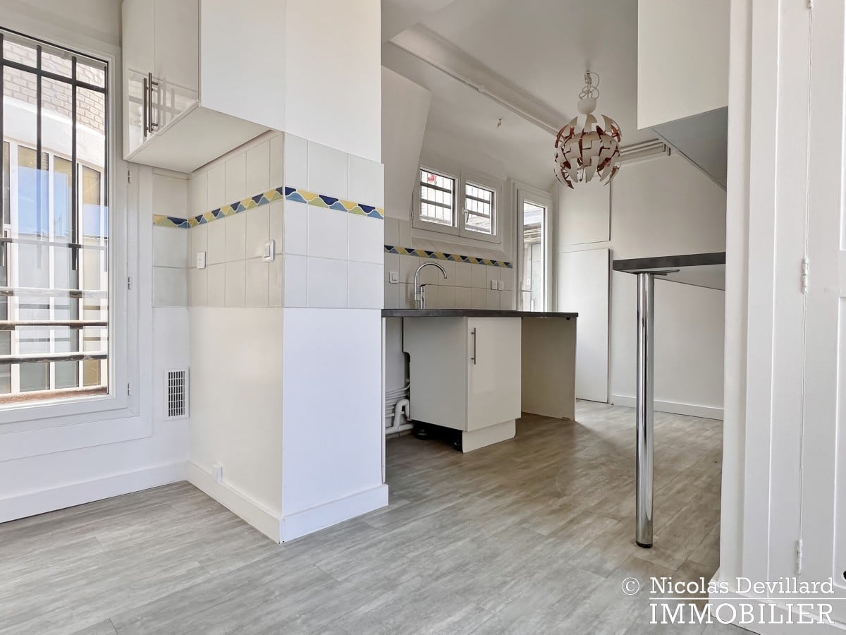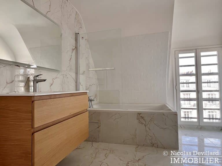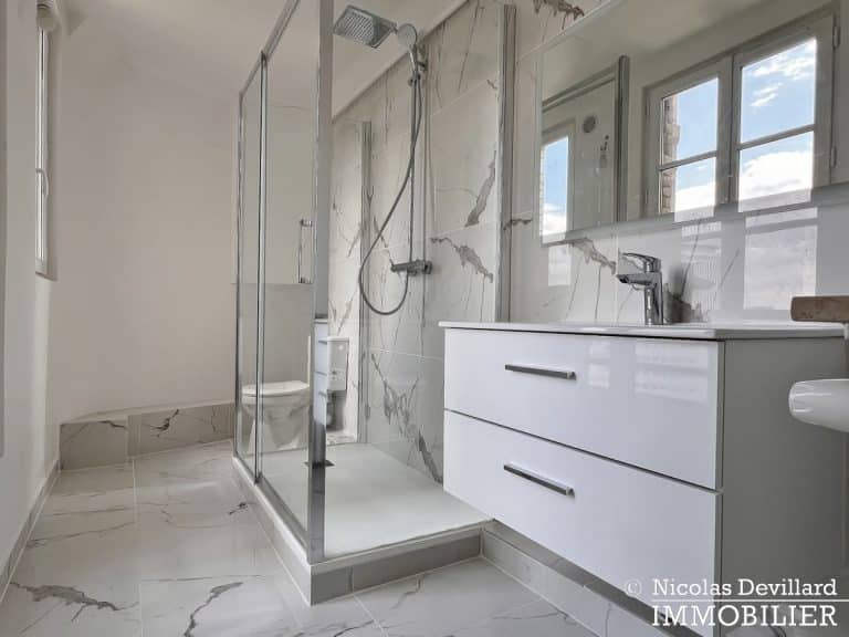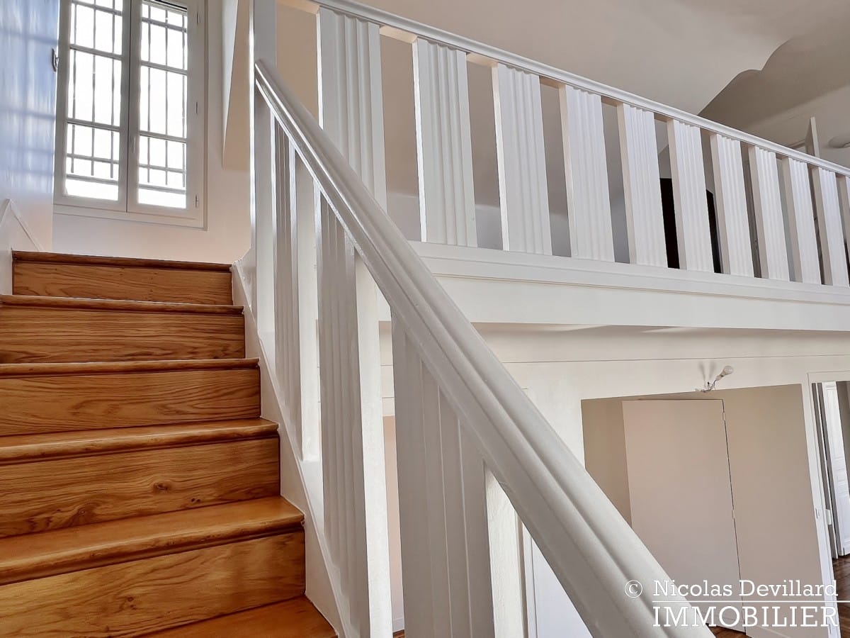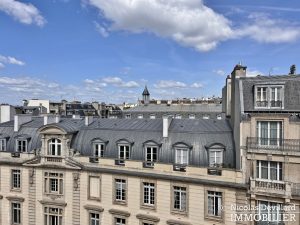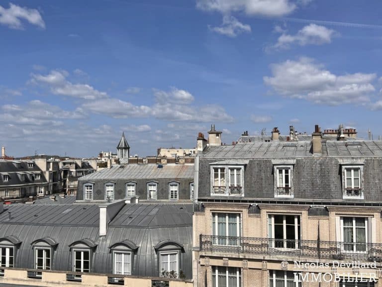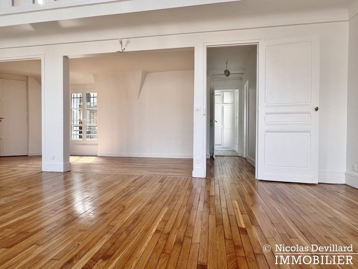 Dans le quartier de la Muette, à proximité de la rue de Passy et de ses marchés, et proche du parc de Passy, ce duplex rénové au dernier étage bénéficie d’une lumière abondante et de volumes hors du commun. Aux 7ème et 8ème étages avec ascenseur d’un immeuble pierre de taille 1930 de standing, il se compose d’une entrée, un salon double très haut de plafond et ouvrant sur un balcon, 3 chambres, une mezzanine-bureau, une cuisine aménagée, 3 salles de bains (1 avec baignoire, 2 avec douche), 2 wc, une cave. 1 parking dans l’immeuble.