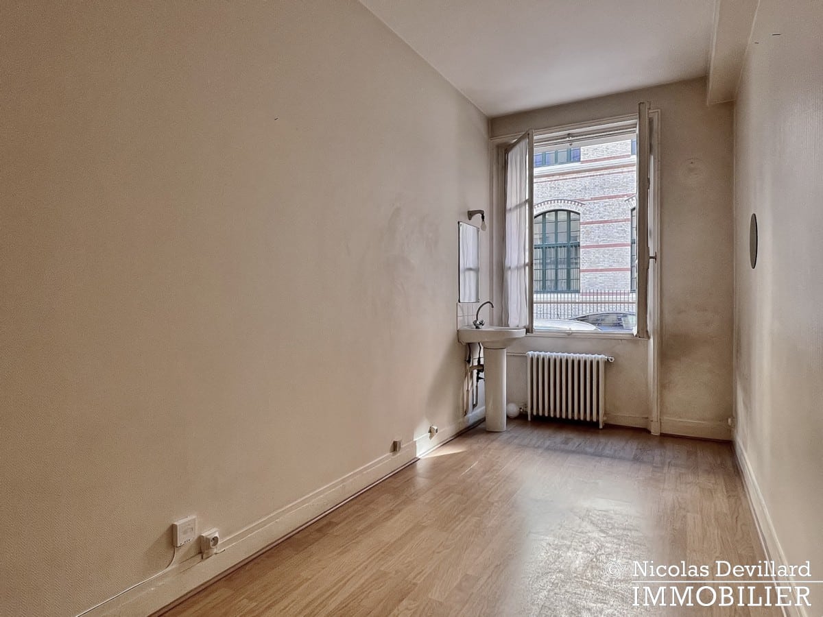 Dans le quartier du Ranelagh, à deux pas de l’avenue Mozart et de la rue de Passy, non loin du jardin du Ranelagh, et à proximité immédiate du jardin de la Place Rodin. Situé au rez-de-chaussée surélevé d’un immeuble après-guerre en pierre de taille de standing, cette chambre de service de 9,45 m² carrez est dotée d’un lavabo et du chauffage collectif. Une salle de douche et des wc communs très propres sont à deux pas de la chambre. Volets métalliques. Raccordée à la fibre. Cette chambre peut aussi bien servir de logement, de chambre d’appoint ou de bureau.