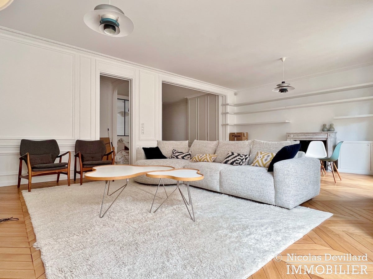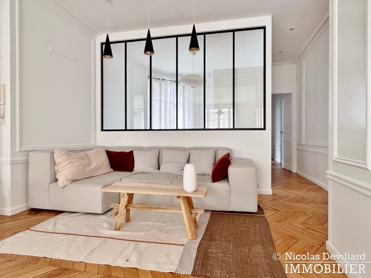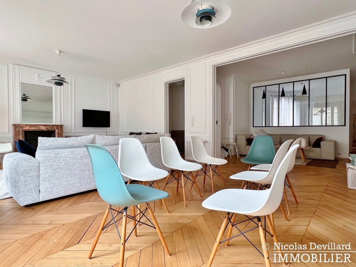 Dans le quartier de la place de Breteuil et du marché de l’avenue de Saxe, à l’abri d’une calme et élégante rue résidentielle, ce classique appartement haussmannien a fait l’objet d’une importante rénovation pour l’adapter aux attentes actuelles tout en conservant tous ses attributs d’époque : parquet point de Hongrie, moulures, cheminées décoratives, vitraux… Dans un bel immeuble pierre de taille post-haussmannien de grand standing, cet appartement au 4ème étage avec ascenseur se compose d’une vaste entrée, un grand salon double de 57 m² doté de 2 cheminées, cuisine avec coin-repas entièrement équipée (lave-vaisselle, cave à vins) en face du salon, un bureau ou 4ème chambre (pièce avec la verrière), 3 chambres avec dressings, 2 salles de bains avec fenêtre (1 avec baignoire et douche, 1 avec douche), 2 wc séparés. Très nombreux placards, espace buanderie avec lave-linge et sèche-linge.
