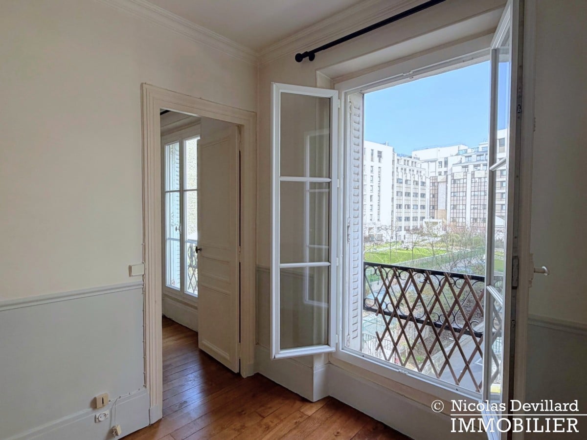 A deux pas du square Adolphe Chérioux et de la mairie du 15ème, des nombreux commerces de la rue Cambronne, et non loin de la gare Montparnasse, cet appartement bénéficie de jolies vues dégagées, de calme et du caractère d’un appartement parisien. Situé au 2ème sans ascenseur d’un charmant immeuble ancien, cet appartement traversant se compose d’une entrée, un salon, une salle à manger intégrant une cuisine aménagée (ces deux pièces sont actuellement reliées par une porte et une baie à moitié ouverte), une chambre avec placards, une salle de bains et wc. Toutes les pièces sont dotées de fenêtres double vitrage.