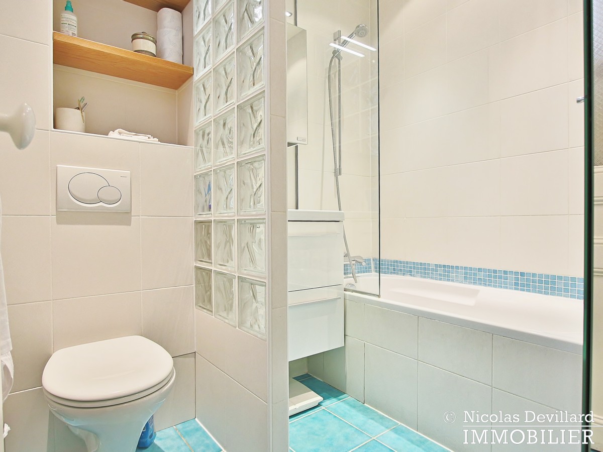A deux pas du village d’Auteuil, à proximité de tous les commerces, marchés, et non loin du Bois de Boulogne, cet appartement bénéficie d’une vue dégagée sur les jardins d’hôtels particuliers et de tous les attributs de l’appartement parisien : parquet point de Hongrie, moulures, cheminée, décoration soignée et balcon. Situé au 5ème étage avec ascenseur d’un immeuble pierre de taille, cet appartement de 75 m² se compose d’une entrée, vaste salon et salle à manger ouvrant sur le balcon, une cuisine équipée LV LL, une salle de bains avec wc, une chambre avec dressing suivie d’une petite pièce bureau ou chambre de jeune enfant, elle aussi dotée de placards.