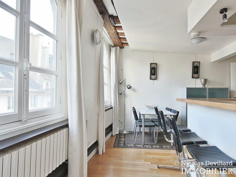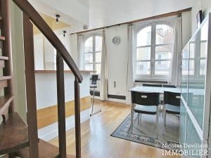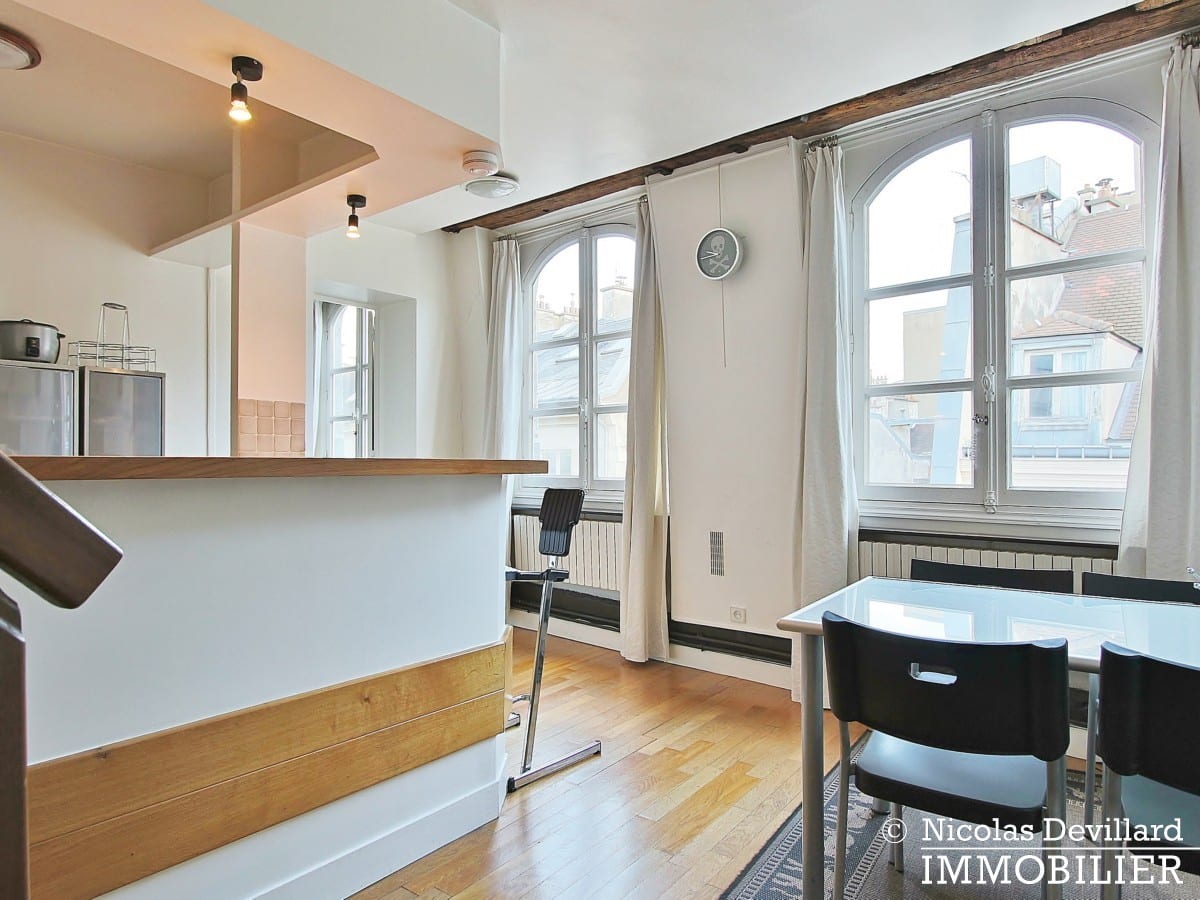 Dans une jolie rue piétonne du quartier Montorgueil, véritable village hyper central, vivant et très bien desservi, ce duplex sous les toits offre une abondance de lumière et le calme du dernier étage. Au 5ème étage avec ascenseur d’un bel hôtel particulier familial du 18ème siècle en pierre de taille, cet appartement donnant sur rue et sur cour, se compose d’une entrée, un salon avec canapé-lit, une salle à manger avec cuisine à l’américaine équipée LVLL, une chambre, une salle de bains, 2 wc. Cet emplacement recherché pour le charme et la qualité de son environnement offre de surcroît une abondance de transports permettant de se déplacer très facilement vers tous les quartiers de Paris et les aéroports.